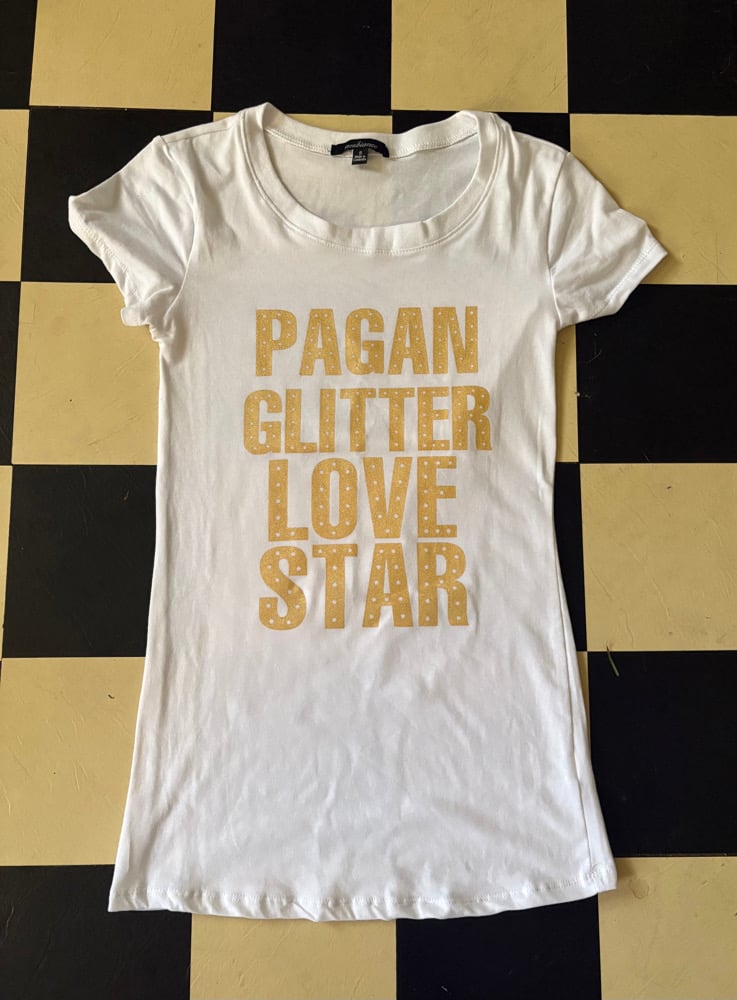 Glitter pagan love forever! Available in a size small.