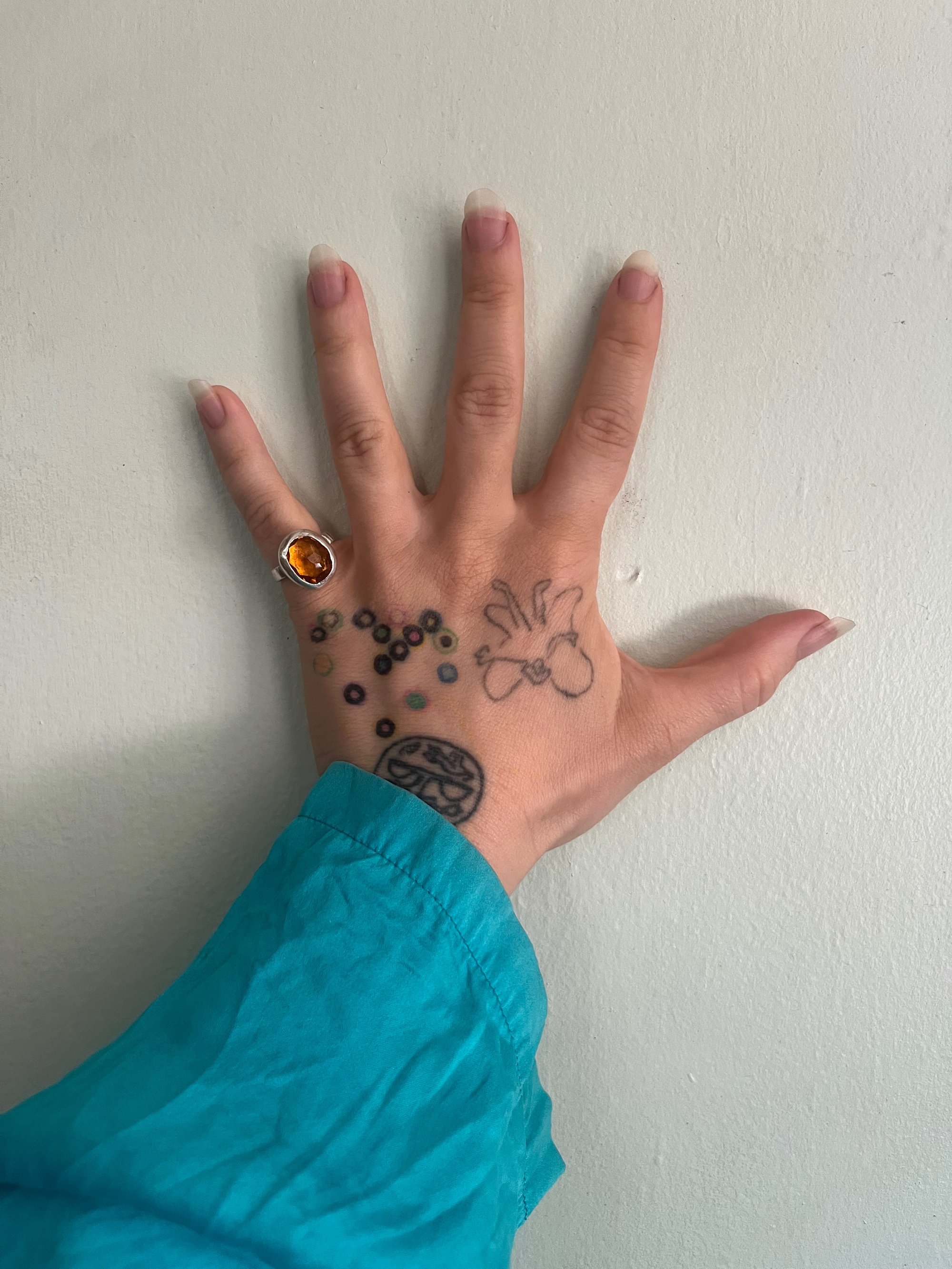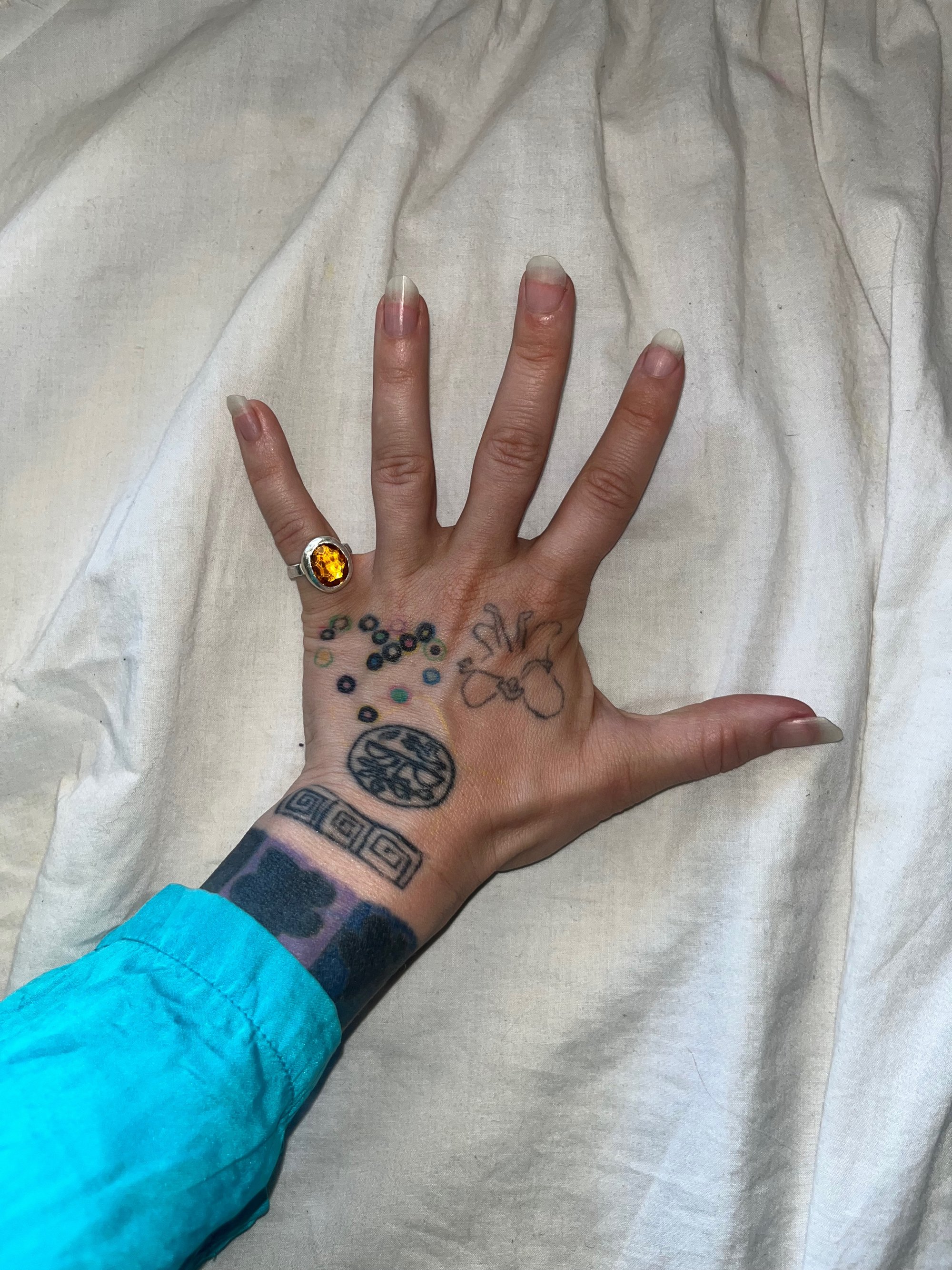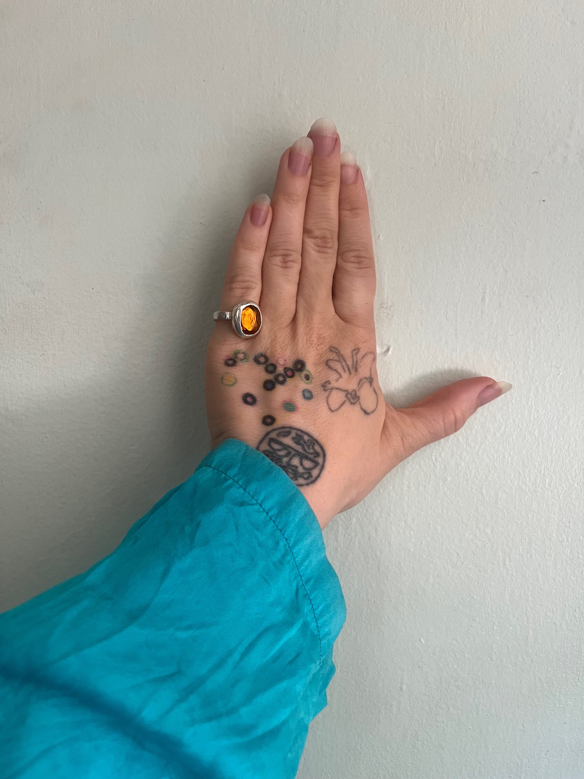 A golden-yellow glass circle, set in silver. Fits a size 2.5; recommended for pinkies.